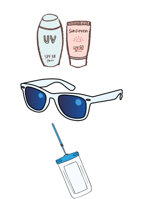 | 日焼け止め用乳液 | ポケットに入れて持っていき休憩時間に塗り直してください |